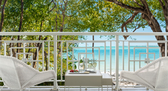 The joyful Coconut Wing offers incomparable views of the soft sand beach and dazzling watercolor sunsets from your own open-air terrace. This well-appointed room features a sofa bed, 50-inch flat-screen TV, coffee maker, and a spacious bathroom with a custom tiled shower. All-natural Lather® bath amenities, including curated Baker's Cay Salt Scrub, round out the in-room amenities.