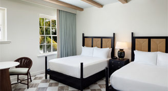 Rooms accentuate Key West’s tropical allure. Amenities include an LCD TV, mini-fridge, iPod docking station, bathrobe and a work desk.