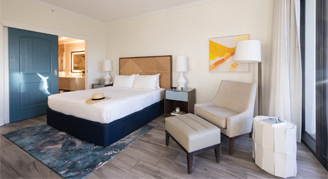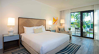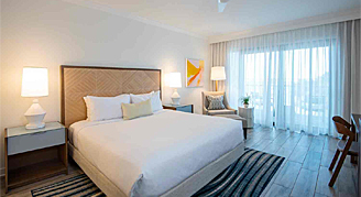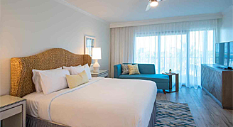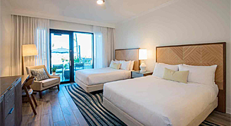 This rooms features one king bed, an elegant interior space, upscale amenities, private furnished balconies and views of resort grounds. Sleeps two guests comfortably.