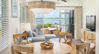 Unwind in the Captain’s Suite, where laid-back island charm meets spacious comfort. With much room to stretch out, enjoy a separate sitting area for quiet relaxation, a private furnished terrace and an oversized bath perfect for lingering soaks. Ideal for two guests, this retreat invites you to slow down, embrace the view, and savor your time at Hawks Cay.