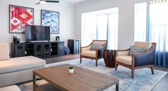 Accessible features include roll-in showers with grab bars, visual fire alarm, telephone with visual alert and outlet within four feet of the location. Text telephones available upon request.