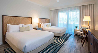 Rooms feature elegant interior space, a private lanai and views of resort grounds. ADA rooms are available with roll-in showers for guests with limited mobility.