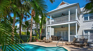 Recently updated two-story single family home with a private unheated pool, tropical garden patio and covered carport. Features a king bed in the master bedroom, two queens in one bedroom and a queen in the third bedroom. Includes a full kitchen, dining area, living room with queen sleeper sofa and three bathrooms. Bathroom count varies by unit.