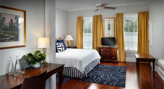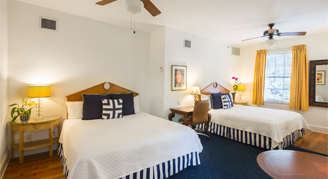 Poolside Classic Guest Rooms are located on the first and second levels adjacent to the main house at the original Marquesa – please note: no elevator access. Each is beautifully furnished with a modern-style bathroom featuring a tub and shower, and central air-conditioning. Rooms offer a view of the extensive garden and pool area, and include a furnished porch that is shared with the adjoining room.
