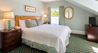 Classic Guest Rooms feature a king bed, flat-screen TV, central air-conditioning, and a bathroom with a glass enclosed tub and shower.
