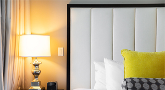 Offering a private sit-down balcony overlooking the peaceful Sugden Plaza, this room has a comfortable lounge area, fitted with a pull-out sofa and arm chair. The ideal place to enjoy room service, or a glass of champagne before hitting the town.