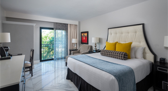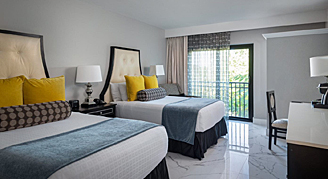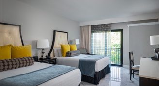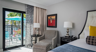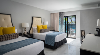 The Pool View Deluxe rooms offer either a walk-out patio or private balcony. Faces the interior Pool Courtyard in the main building.