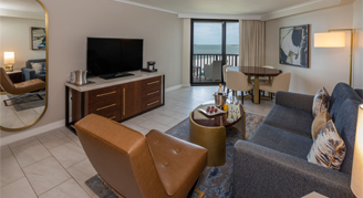 Experience true comfort in this newly renovated suite with stunning views. Unwind on the furnished balcony under the Florida sun. A separate seating area and walk-in shower provide plenty of space. Catch up on shows with the 55-inch HDTV and enjoy spacious and comfortable accommodation with a soothing contemporary theme.