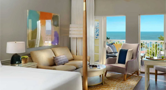 Find your sense of place in these upper floor rooms with sweeping aerial views of the Gulf of Mexico.