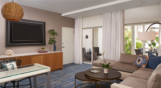 These one-bedroom villa suites are located amongst lush gardens and reflecting ponds. Suites include a living room area, s large bathroom and two furnished patios or balconies.