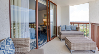 Coastal-View Rooms feature one king or two queen beds, and an oversized bathroom with beach inspired designs. Relax on the large furnished balcony and enjoy views of the City of Naples and a partial-gulf view.
