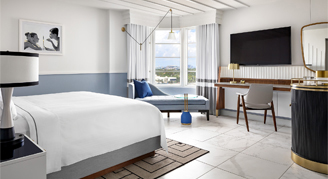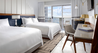 These beautiful hotel rooms effortlessly blend refined European-inspired amenities with the neighborhood's iconic Art Deco architecture. Cool and soothing shades of blue and white evoke feelings of the Mediterranean and mirror the rolling waves of the Atlantic Ocean just behind the hotel's oceanfront hotel. Stylishly appointed and comfortable, guest rooms offer the perfect place to call home during your stay.
