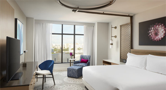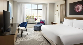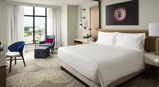 Relax with a king bed, bathroom with oversized shower, spectacular views of Coral Gables & hearing accessible features. Visual fire alarm and notification devices are available, and an outlet within 4' of the phone for TTY (teletypewriter).
