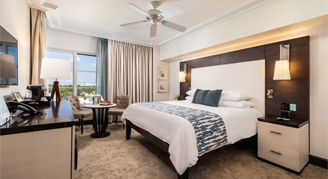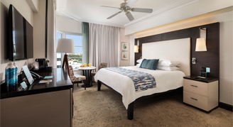 Room features panoramic views of The Palms' tropical gardens and the Atlantic Ocean from floor-to-ceiling windows, these rooms feature one cozy king-size bed with pillow-top mattress and Egyptian cotton linens.