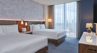 The Swan Reserve offers One- and Two-Bedroom Signature Suites. Each suite features a connecting living room/parlor area and all rooms feature floor-to-ceiling windows, along with wonderful décor and amenities.