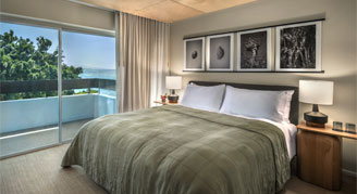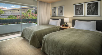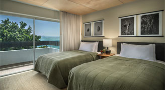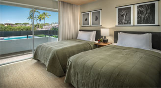 Rooms feature a small view of the Pacific Ocean from the lanai.