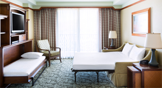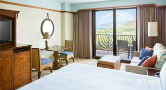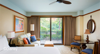 Rooms Feature a partial view of the ocean or better from the room or balcony. An ideal retreat for larger families. Includes separate bedroom, cozy parlor, small refrigerator, luxurious furnishings and magical Disney touches.