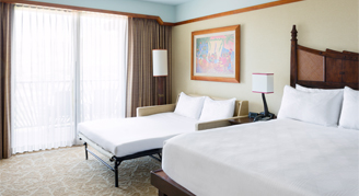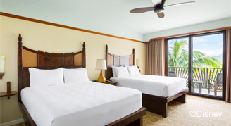 The resort rooms offer comfortable and spacious accommodations with generous amenities. All rooms have custom details that reflect the Hawaiian culture and environment, while magical Disney touches delight kids and adults alike. Housekeeping will be provided every other day and includes bed making, vacuuming, dusting, cleaning of bathroom(s), kitchen/kitchenette, and washing the dishes, removal of trash and towels, as well as replenishment of towels and amenities. Bed sheets are changed every four nights, or upon request.