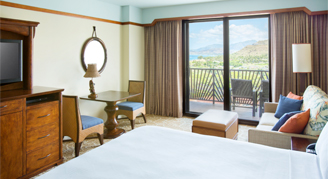Lei Hulu Suite overlooks the Pacific Ocean and the mischievous waters of Waikolohe Valley, all from the top floor of Waianae Tower. Includes private bedroom, butler pantry, kitchen, and two full bathrooms.