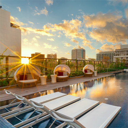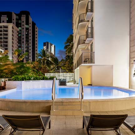 349 Seaside Ave, Honolulu - Oahu, HI, 96815, United StatesThis modern boutique property is located in the center of Waikiki. Enjoy an outdoor rooftop deck with city views, a shallow wading pool, hot tub, fitness center, water loungers and more.