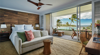 Suites are located on floors 12 - 17 and feature a view of the ocean and surrounding coconut trees from the lanai. Additional amenities include a separate living room and a second bathroom.