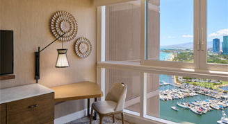 Conveniently located near Ala Moana Shopping Center and the Hawai'i Convention Center, this hotel offers views of the Pacific Ocean from all of the spacious, guest rooms and suites. Enjoy mesmerizing sunsets, gentle trade winds and the stunning turquoise horizon from the infinity pool deck. Plus, take in dramatic floor-to-ceiling views of the harbor at the 100 Sails Restaurant & Bar. From sunrise to sunset, the views are yours to enjoy.