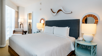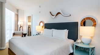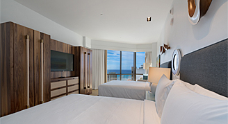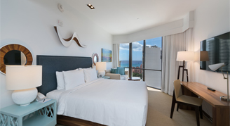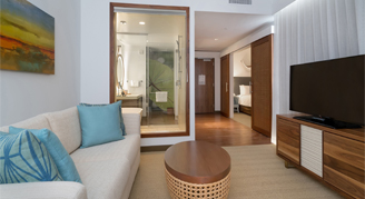 This spacious premium suite features views of the Ocean, a separate open-concept living room with sleeper sofa, and deep soaking tub.
