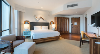 This hotel offers 230 guest rooms designed in contemporary island style with a prime location just steps away from Waikiki’s beachfront. Room features include a rainfall shower, floor-to-ceiling windows, a smart TV, a Dry Bar® hair dryer and a deep-soaking tub (select rooms). Many rooms offer a stunning mountain view or a view of the Pacific Ocean, providing an iconic Oahu ambiance.