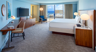 Rooms are located on the private Regency Club levels of the Diamond Head Tower, and feature a view of the ocean from the balcony or from within the room.