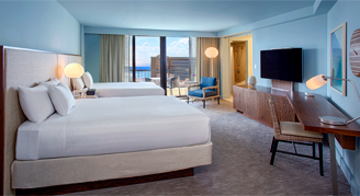 Rooms are located on floors 5 through 40 and feature a view of the ocean from within the room.