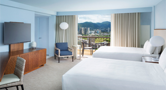 Rooms are located on floors 5 through 24 and feature a view of Waikiki and the Ko'olau Mountains.