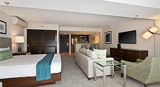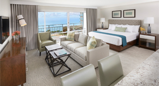 Suites feature a partial-ocean-view of the Pacific Ocean. Additional amenities include a fully equipped kitchen, a designer bathroom and a private balcony.