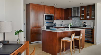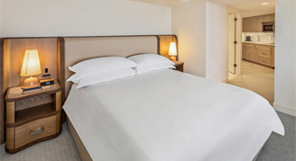 These newly renovated suites feature views of the Pacific Ocean and Waikiki Beach from the private lanai. Suites include a kitchen and provide a residential-style layout.