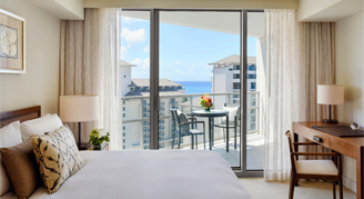 These newly renovated rooms feature views of Waikiki and the Pacific Ocean. Located on floors 19 and 22, rooms include a private lanai and a kitchenette.