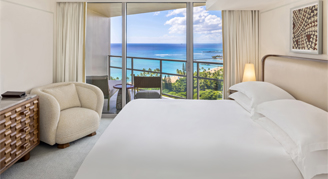 These newly renovated rooms feature a view of the Ko'olau Mountains, the ocean and skyline of Honolulu. Rooms are located on floors 8 to 15.