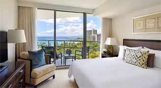 These newly renovated rooms feature a view of the Ko'olau Mountains, the ocean and skyline of Honolulu. Rooms are located on floors 9 to 15.