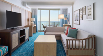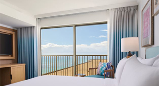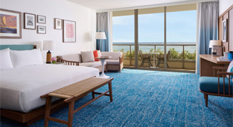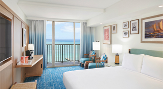 Rooms are located in the Ocean Tower and feature a full ocean view.