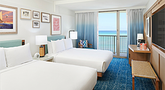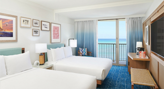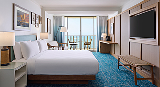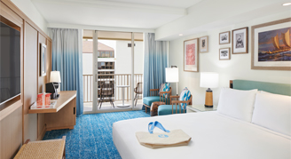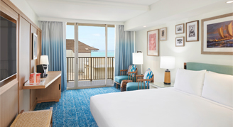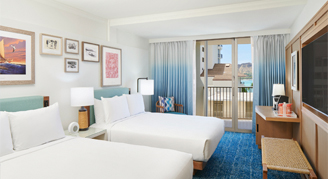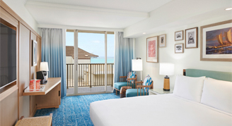 Guest rooms in the Ocean Tower and Pacific Tower are spacious and casually sophisticated. Additional features include 55" wall mounted Smart TVs, Bluetooth clock/radio, USB charging ports, Navasana Collection bath amenities, shower or shower/tub combos and vanities with a lighted mirror. Level-up at the Voyager 47 Club Lounge with uninterrupted views of the Pacific Ocean and gorgeous evening sunsets, exclusive to guests in the club rooms and suites. The Voyager 47 Club experience begins with stunning views from the oceanfront rooms and spacious comfort in club suites and exclusive access at the Voyager 47 Club Lounge to enjoy morning breakfast and evening appetizers with complimentary beverages.