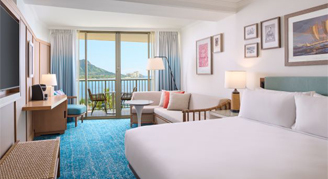 Rooms are located in the Pacific Tower and feature a view of the ocean. Guests also have access to the Voyager 47 Club Lounge, which offers breakfast and early evening pupus (appetizers) with featured wines and local craft beer.