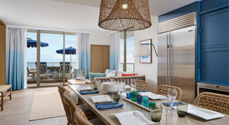 Located at the resort's Diamond Head Tower, penthouse level floor with private elevator access. A luxurious residential experience featuring two bedrooms and two bathrooms with tubs. Suite features separate living and dining area with a fully furnished kitchenette comprising of all Sub-Zero brand appliances including a full size refrigerator, microwave/oven and dishwasher. An all furnished outdoor lanai that overlooks Waikiki Beach with views of Diamond Head and evening sunsets. Includes access to the Voyager 47 Club Lounge oceanfront location, which offers breakfast and early evening pupus (appetizers) with featured wines and local craft beer.