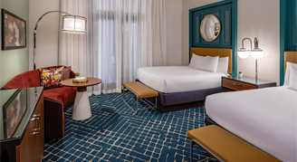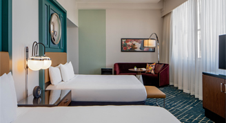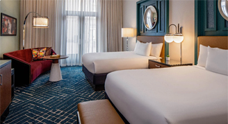 Wake up feeling inspired to explore the French Quarter when you stay in this modern, accessible room with historic accents that capture the energy and spirit of New Orleans. Accessible room comes equip with a tub and grab bars.