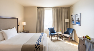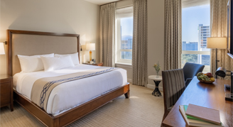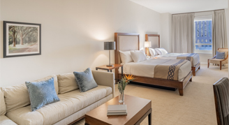 Complete with a parlor and bedroom area, Deluxe Suites feature a bright living space with a separate living area, multiple windows, a spa-like oversized bathroom and stunning natural light.