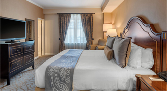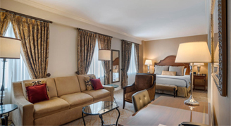 Generous residential-style suites offer the flexibility to entertain in comfort and relax in abundant privacy. These corner rooms showcase contemporary décor featuring Creole and French touches and offer one-king bed and a separate living area with a queen-size sofa sleeper, dining table for 4 people and 2 full bathrooms.