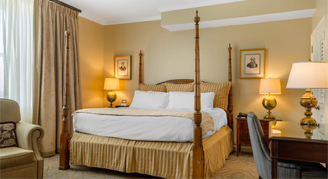 The suite is beautifully appointed with French and Creole accents and features a sitting area with a large granite bathroom.