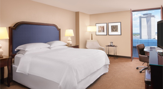 Elevate your stay in Sheraton's Club room. In addition to remarkable views of the French Quarter or Canal Street from the room's floor-to-ceiling windows, enjoy exclusive lounge access that offers complimentary hot breakfast, hors d'oeuvres, grab-and-go snacks, high-speed Wi-Fi, complimentary non-alcoholic beverages and business services.