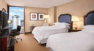 These exquisitely designed hotel rooms provide a modern urban retreat in New Orleans. All rooms have floor-to-ceiling windows overlooking New Orleans, signature Sheraton bedding, coffee makers, workstations and smart TVs.