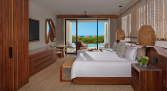 Suites feature an ocean view. Additional amenities include a living room and direct access to a pool.