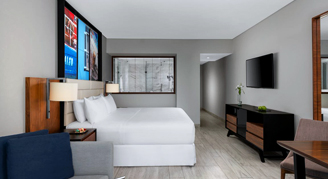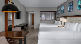 These corner suites are located on floors 12 - 14 and have a separate bedroom, two bathrooms, a separate living and dining area and a spacious terrace with a jetted tub. It also features access to the exclusive Enclave Lounge, located in the main tower, which provides daily continental buffet breakfast, afternoon hors d'oeuvres and premium bar service, private check-in, dedicated concierge service and upgraded in-room amenities.