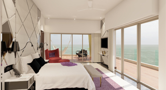 These suites are located in the North Tower on the higher floors and feature an expansive ocean view with a large corner terrace and plunge pool. Décor and furnishings may vary based on location.