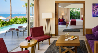 Suites feature an ocean view. Additional amenities include a separate living area.
